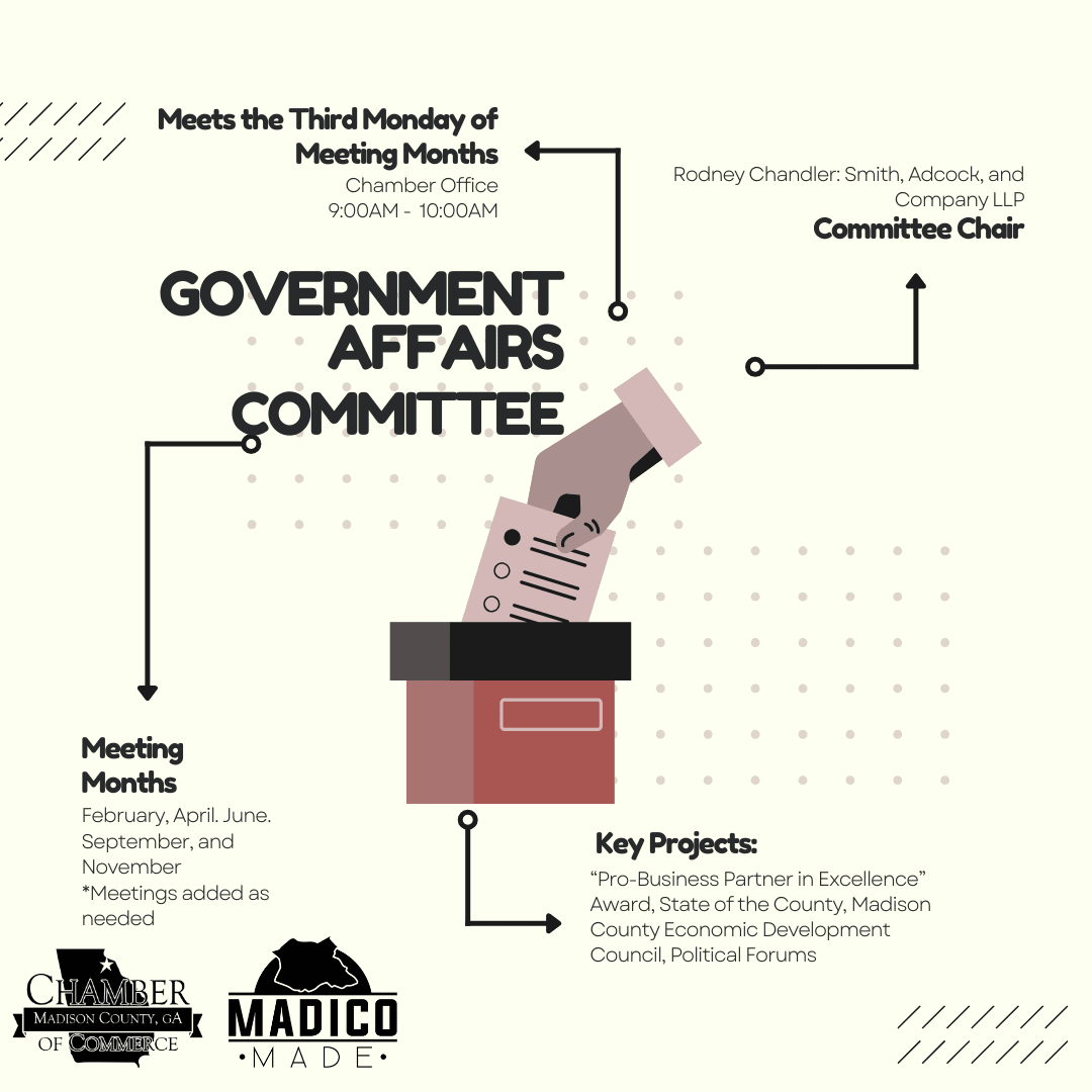 Meetings are located at the Madison County Chamber Office. If you are unable to attend in-person you are welcome to join us online via Zoom.
