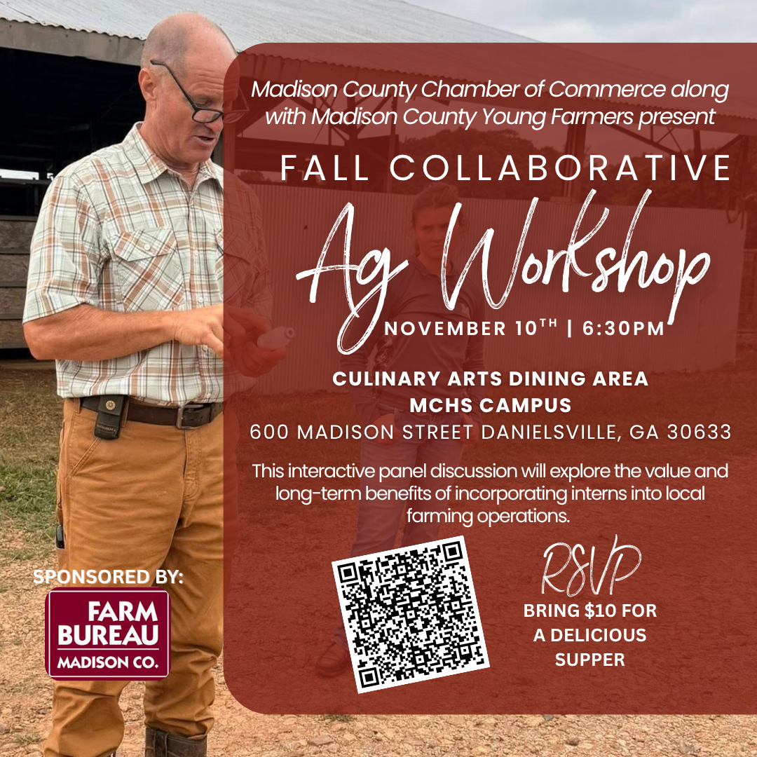 The Madison County Chamber’s Agricultural Promotions Committee, in partnership with Madison County Young Farmers, is proud to host “Planting the Future: The Power of Internships in Agriculture” on November 10th from 6:30PM to 8:00PM at Madison County High School's Culinary Arts room.