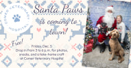 Santa Paws is coming to town! Join the Elves of Comer Veterinary Hospital from 3 to 6 p.m. on Friday, Dec. 5, for our second annual pet photos with Santa event! This FREE visit with Mr. Claus himself includes ... * FREE professional pet photos with ...