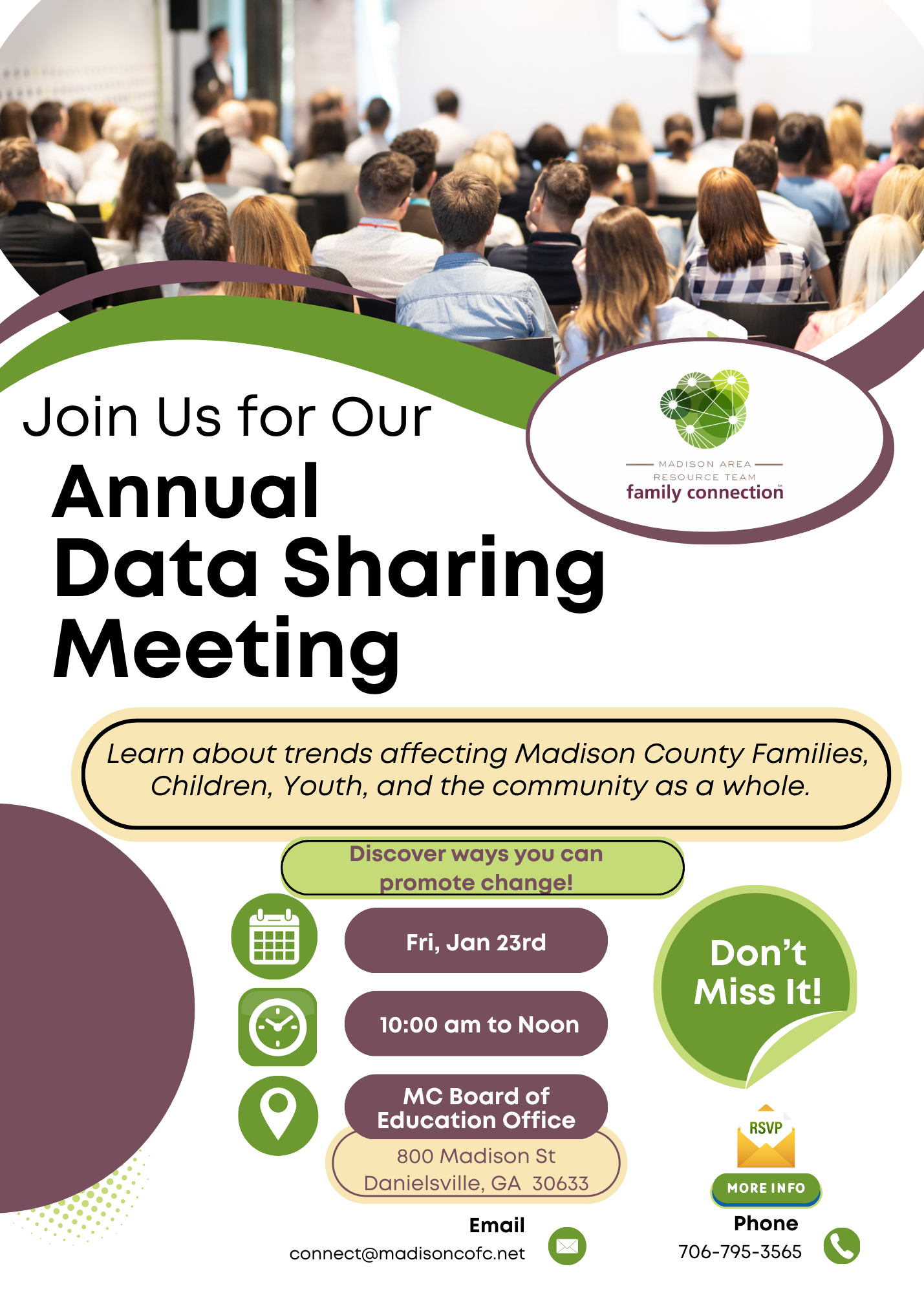 M.A.R.T.'s Annual Data Sharing meeting will be held on Fri, Jan 23rd from 10:00 am to noon at the Madison County Board of Education Office. Learn about trends that are negatively impacting Madison County families, youth, children, and the community as a whole. Then, discover ways that you can help to create a positive impact. The meeting is in lieu of the regular monthly M.A.R.T. meeting.