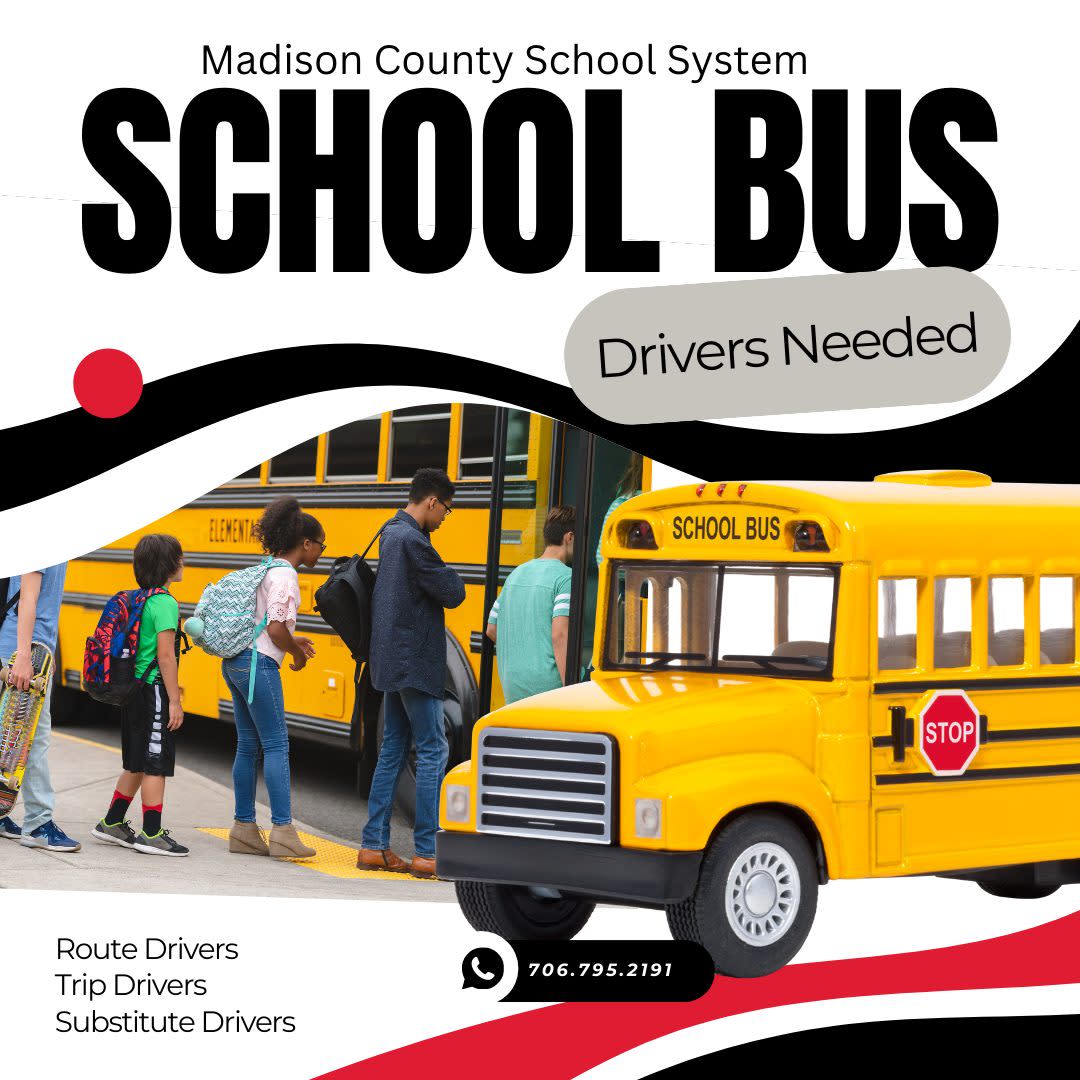 Madison County Charter School System - Hiring Bus Drivers, Monitors, and Substitutes