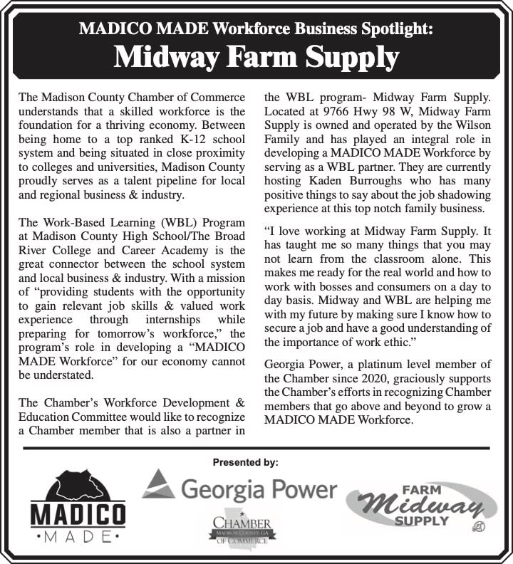 MADICO MADE WORKFORCE SPOTLIGHT: Midway Farm Supply Back to News Items MADICO MADE WORKFORCE SPOTLIGHT: Midway Farm Supply By Madison County Chamber of Commerce 1/10/2022 Images × Share × Email Facebook LinkedIn X Pinterest Powered By GrowthZone