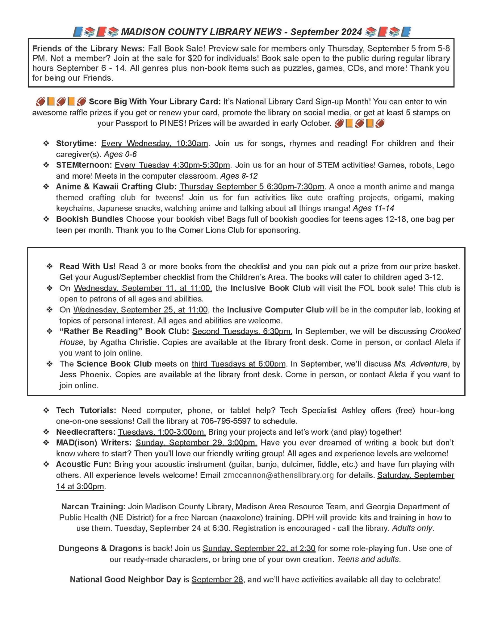 Madison County Library September Events and Newsletter